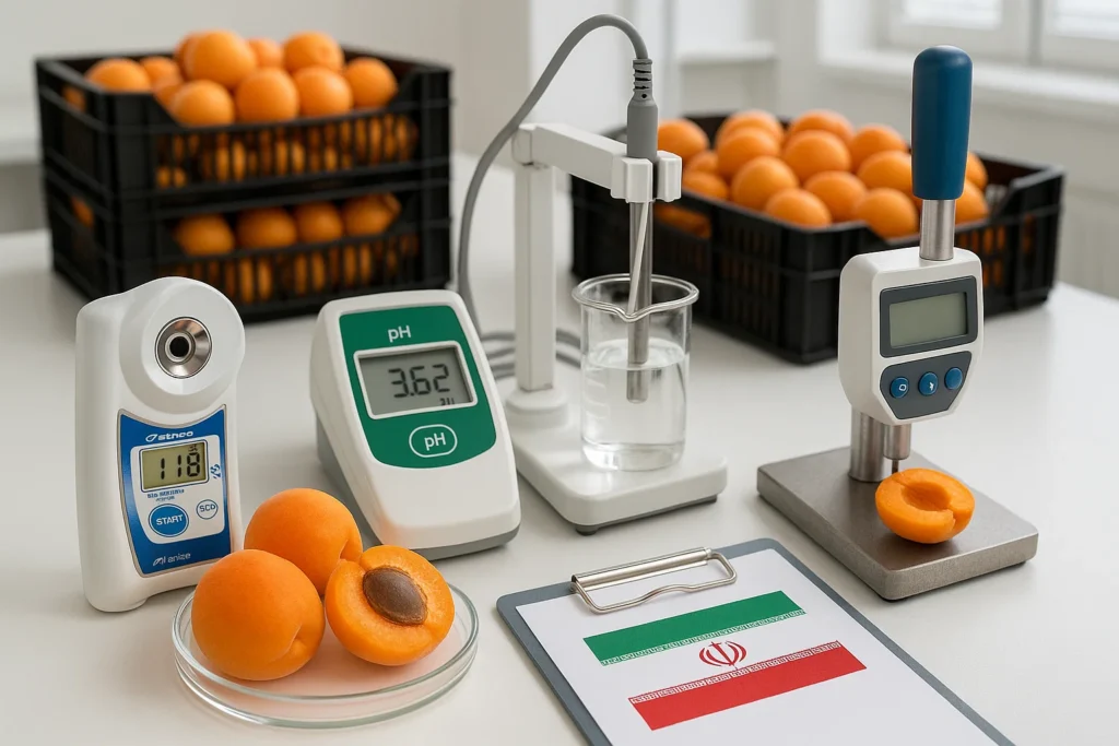 - بریکس (Brix): میزان قند محلول در آب میوه را نشان میدهد. بریکس بالاتر به معنای طعم شیرینتر و کیفیت بالاتر است. برای زردآلوی صادراتی تازه، معمولاً بریکس بالای ۱۲ درجه ایدهآل است.