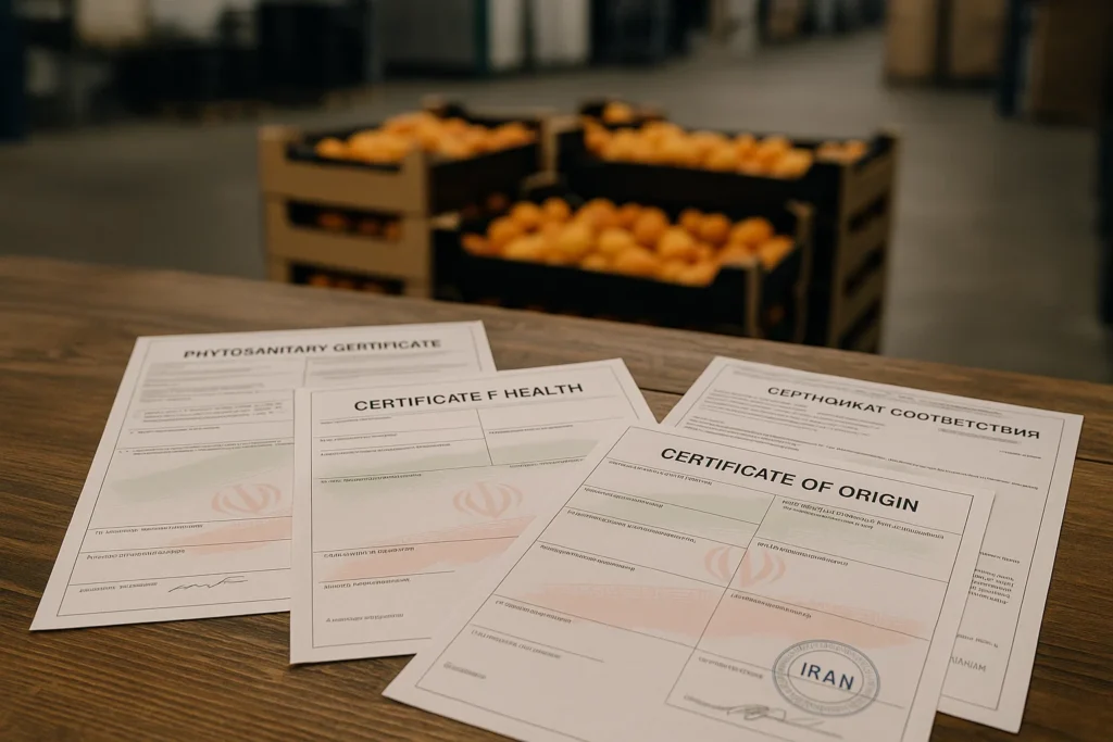 - اخذ مجوزها: دریافت گواهی بهداشت نباتی و گواهی سلامت از سازمانهای مربوطه در ایران.