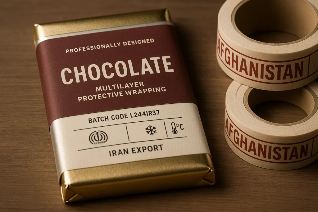 - بستهبندی اولیه (مصرفکننده): باید جذاب، دارای برچسبگذاری به زبان فارسی/دری و پشتو (شامل تاریخ تولید، انقضا، ترکیبات و نشان حلال) و مقاوم در برابر نفوذ هوا و رطوبت باشد (معمولاً سلفونهای متالایز یا فویل آلومینیوم).