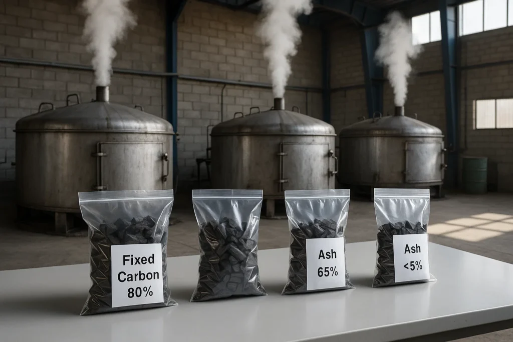 | درصد کربن ثابت (Fixed Carbon) | بالای 75% (برای گرید A+) | هرچه بالاتر، ماندگاری سوخت و حرارت بیشتر است. |