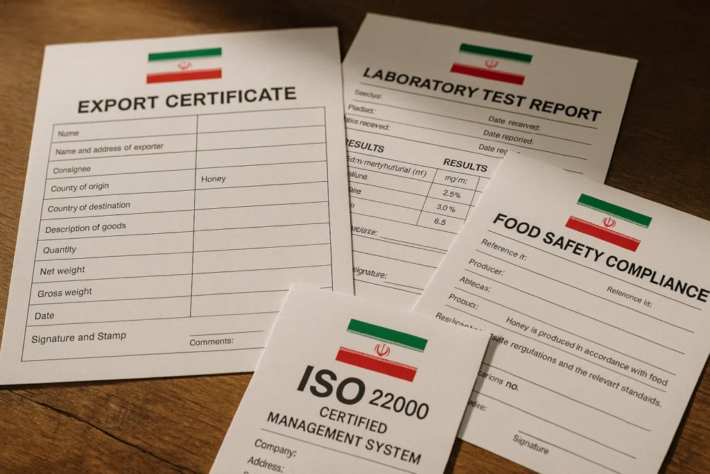 برای موفقیت در صادرات عسل به ارمنستان، کسب مجوزهای داخلی و بینالمللی استانداردسازی محصول، حیاتی است. این مدارک کیفیت و سلامت کالای شما را تضمین میکنند.