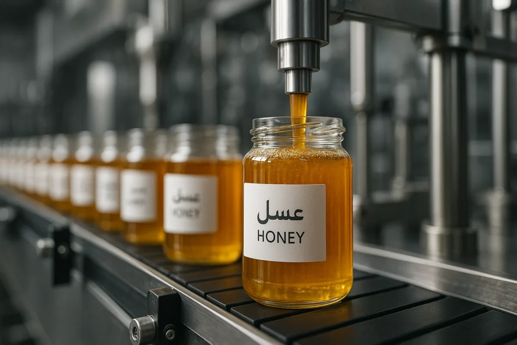 - بستهبندی: معمولاً عسل به صورت فله در بشکههای ۲۲۰ لیتری (برای مصارف صنعتی و بستهبندی مجدد) یا به صورت بستهبندی مصرفکننده در ظروف شیشهای یا پت (از ۲۵۰ گرم تا ۱ کیلوگرم) صادر میشود. ظروف شیشهای برای بازارهای لوکس مانند دبی جذابیت بیشتری دارند. بستهها باید به خوبی شیرینگ و بر روی پالتهای استاندارد قرار گیرند تا در حمل و نقل آسیب نبینند.