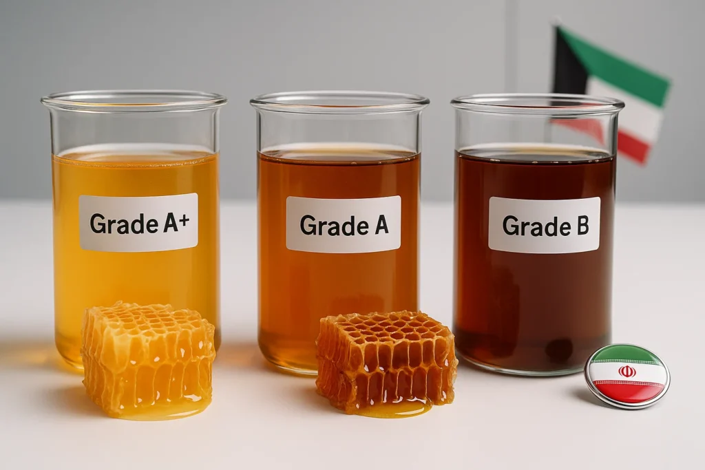 - گرید A: عسل طبیعی، ساکارز زیر ۵٪، مورد تأیید استانداردهای صادراتی.