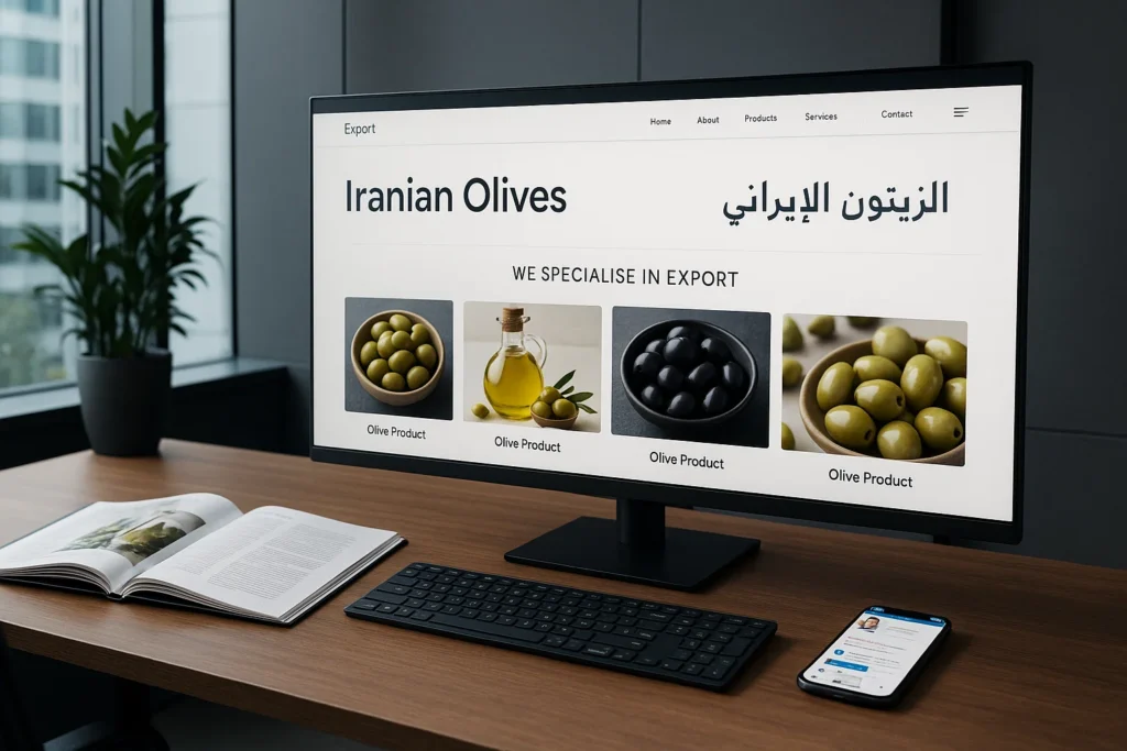 - ✅ سئو حرفهای (SEO): مهمترین بخش. تاجر عراقی وقتی در گوگل جستجو میکند “موردون الزيتون من إيران” (تامینکنندگان زیتون از ایران) یا “أسعار الزيتون الإيراني” (قیمت زیتون ایرانی)، باید سایت شما را در صفحه اول ببیند. این بازاریابی سئومحور، مشتری را به سمت شما میآورد.