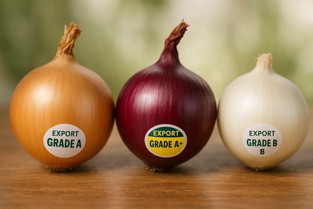 پیاز صادراتی معمولاً بر اساس اندازه، شکل، سلامت و عدم وجود آسیب‌دیدگی درجه‌بندی می‌شود: