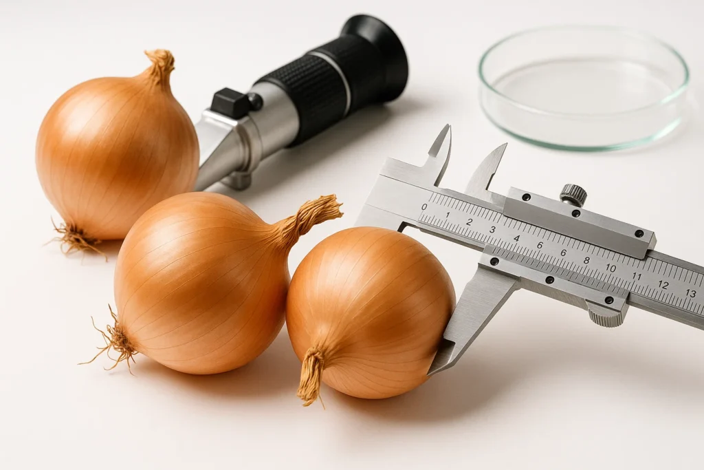 اگرچه برای پیاز تازه، مشخصات آزمایشگاهی مانند pH یا بریکس (که برای محصولات فرآوری‌شده کاربرد دارد) مرسوم نیست، اما پارامترهای کیفی مشخصی وجود دارد که باید به خریدار ارائه دهید و در قرارداد ذکر کنید: