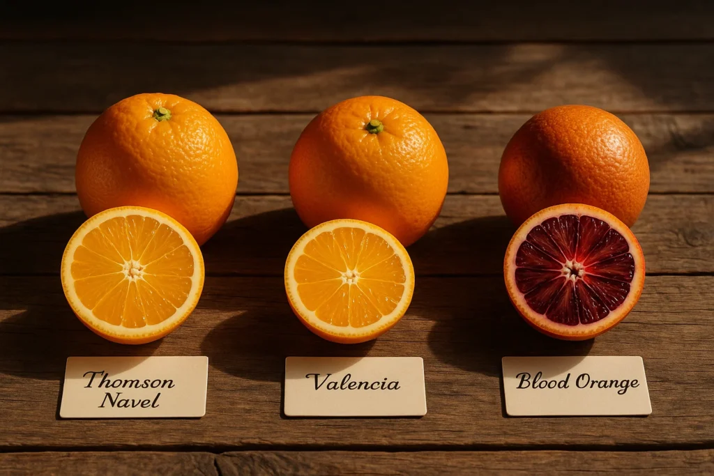 - پرتقال تامسون ناول (Thomson Navel): محبوبترین نوع پرتقال صادراتی، بدون بذر، با پوستگیری آسان و طعم شیرین. این نوع پرتقال از باغات شمال و جنوب کشور برداشت میشود و برای مصرف تازهخوری ایدهآل است.
