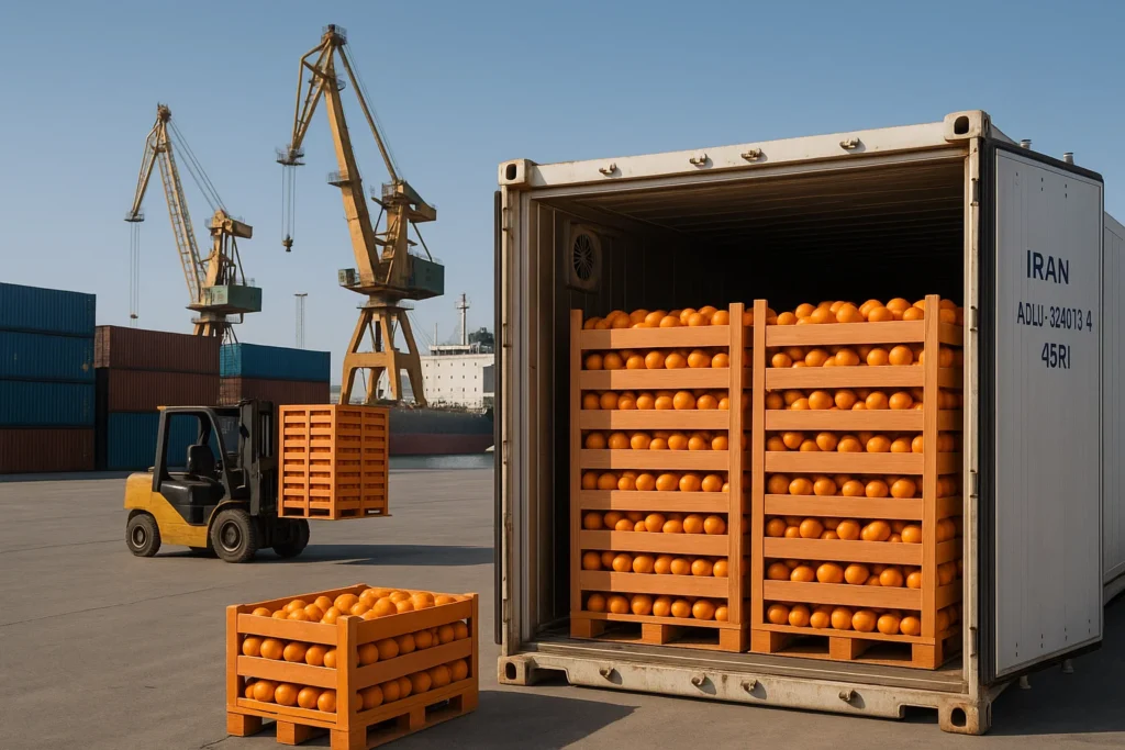 - نوع کانتینر: حمل پرتقال باید حتماً توسط کانتینرهای یخچالی (Reefer Containers) انجام شود.