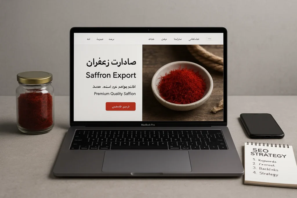 - ✅ سئو تخصصی و چندزبانه (Multilingual SEO): این مهمترین بخش است. شما باید کاری کنید که اگر یک تاجر در مومبای جستجو کرد “Buy Iranian Saffron” یا “Saffron Suppliers”، وبسایت شما در صفحه اول گوگل ظاهر شود.