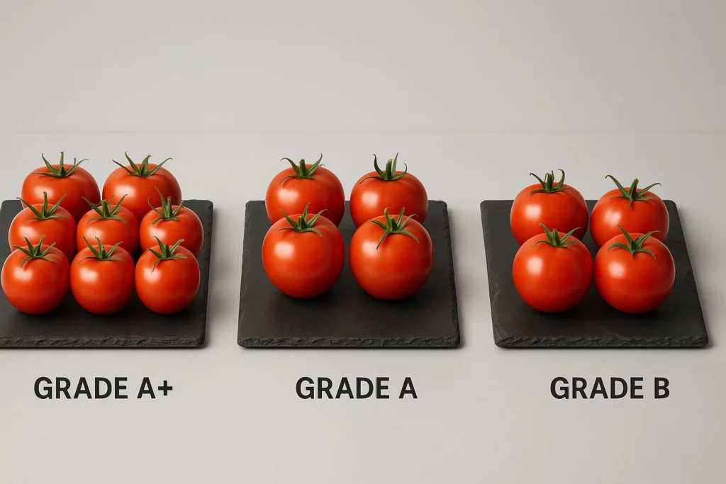شناخت محصول اولین قدم برای موفقیت است. گوجه فرنگی صادراتی بر اساس کیفیت، اندازه، نوع و بستهبندی به گریدهای مختلفی تقسیم میشود که هر کدام قیمت و مشتری خاص خود را دارند.