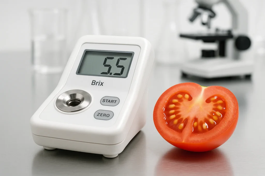 - بریکس (Brix): میزان قند محلول در آب میوه که نشاندهنده طعم و شیرینی آن است. (معمولاً بین 4 تا 6)